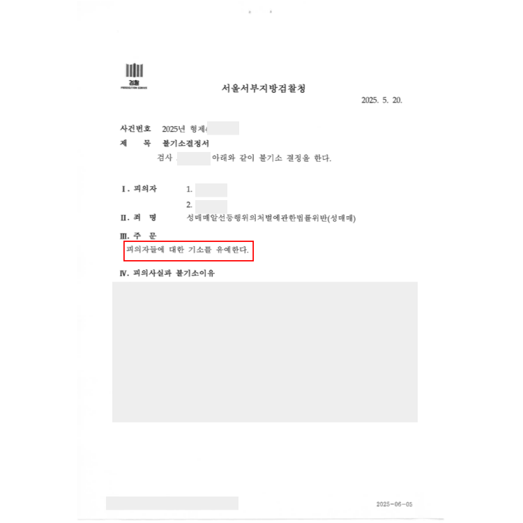 기소유예 처분을 내려 형사처벌 전과 없이 사건을 종결했습니다.