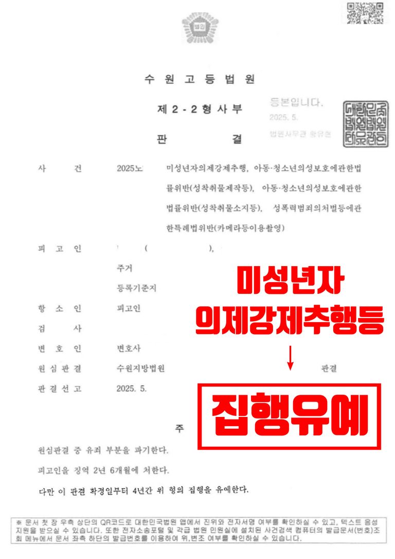 수원고등법원 판사는 법률사무소 유(唯)의 형사전문변호사의 주장 및 제출한 양형사유를 받아들여, 범행 사실은 인정되나, 의뢰인이 자신의 잘못을 모두 인정하며 깊이 반성하고 있는 점, 피해자와 합의하여 피해자가 처벌불원의사를 표한 점, 사회적 유대관계가 분명하고 의뢰인들의 가족들이 의뢰인을 선도할 것을 다짐하고 있는 점등을 이유로 ‘징역 2년6개월 집행유예 4년’을 선고하였습니다.