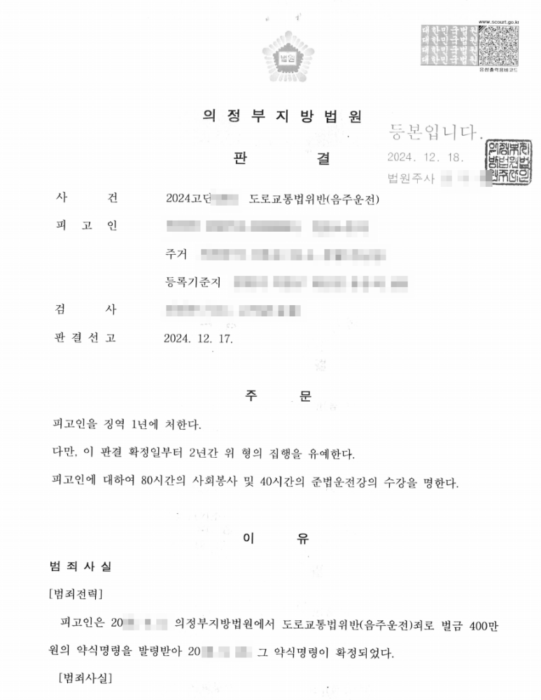 직전 음주운전 전과로부터 얼마 오래되지 않은 점,
