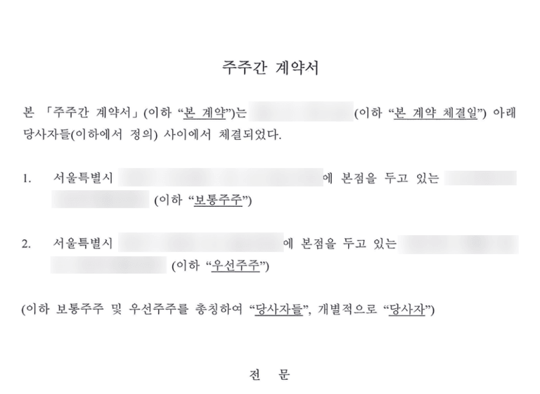이 계약은 대외적으로는 회사의 정관만큼 강제력은 없지만, 주주 간의 권리·의무를 명확히 하고 공동창업자 사이, 혹은 창업자와 투자자 사이의 신뢰를 계약으로 구조화한다는 점에서 반드시 필요하다.