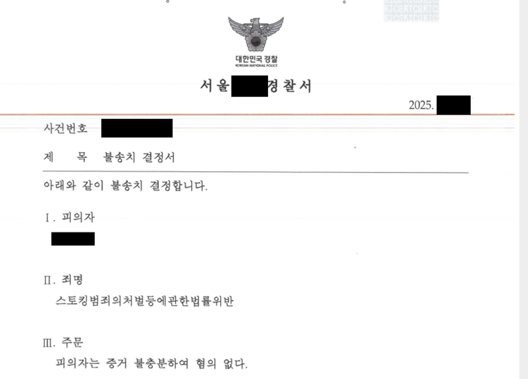 이 사건과 같이, 스토킹처벌법 위반 사건의 경우에도 어떻게 대응을 하느냐에 따라 수사기관의 결정은 달라질 수 있습니다.