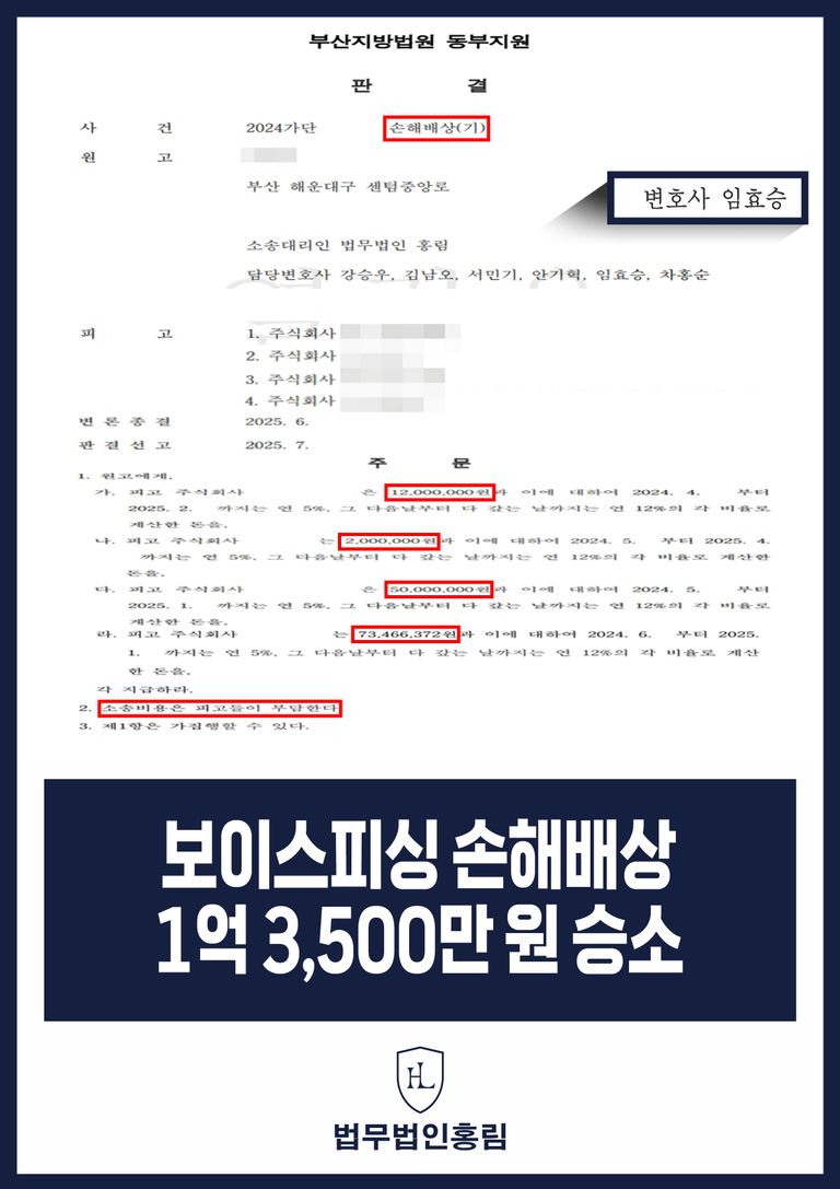 이번 판결은 보이스피싱 피해자가 법률적 대응을 통해 실질적인 피해 회복이 가능함을 보여주는 중요한 선례가 될 것입니다. 법무법인 홍림은 이번 보이스피싱 손해배상 승소를 통해 다시 한번 사기 피해 구제에 대한 전문성을 입증했습니다.