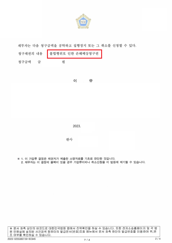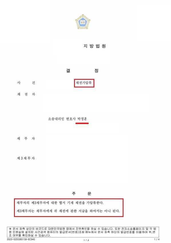 상간남의 '직장 급여' 가압류 인용 결정 승소 사례입니다.