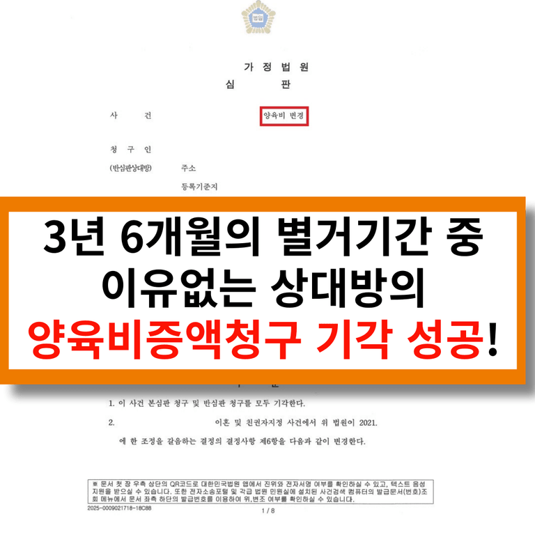 소송을 진행, 양육비 증액 방어를 한 사례입니다.