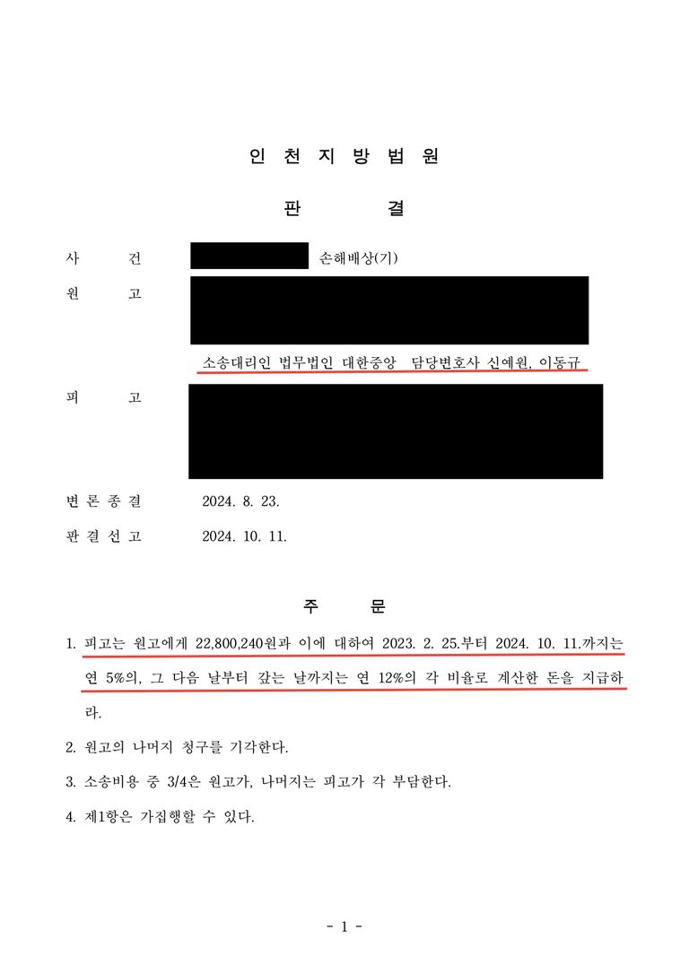 재판부는 이동규 변호사의 주장을 인정하여 약 2280만 원과 지연손해금의 지급을 명령했습니다.