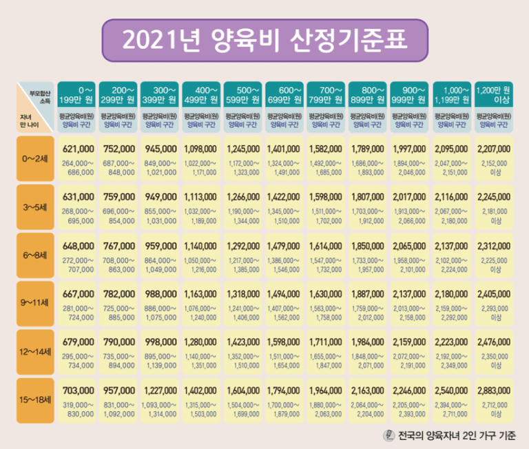 종전 최저 양육비 532,000원에서 89,000원 인상된 621,000원으로 정해졌고,
