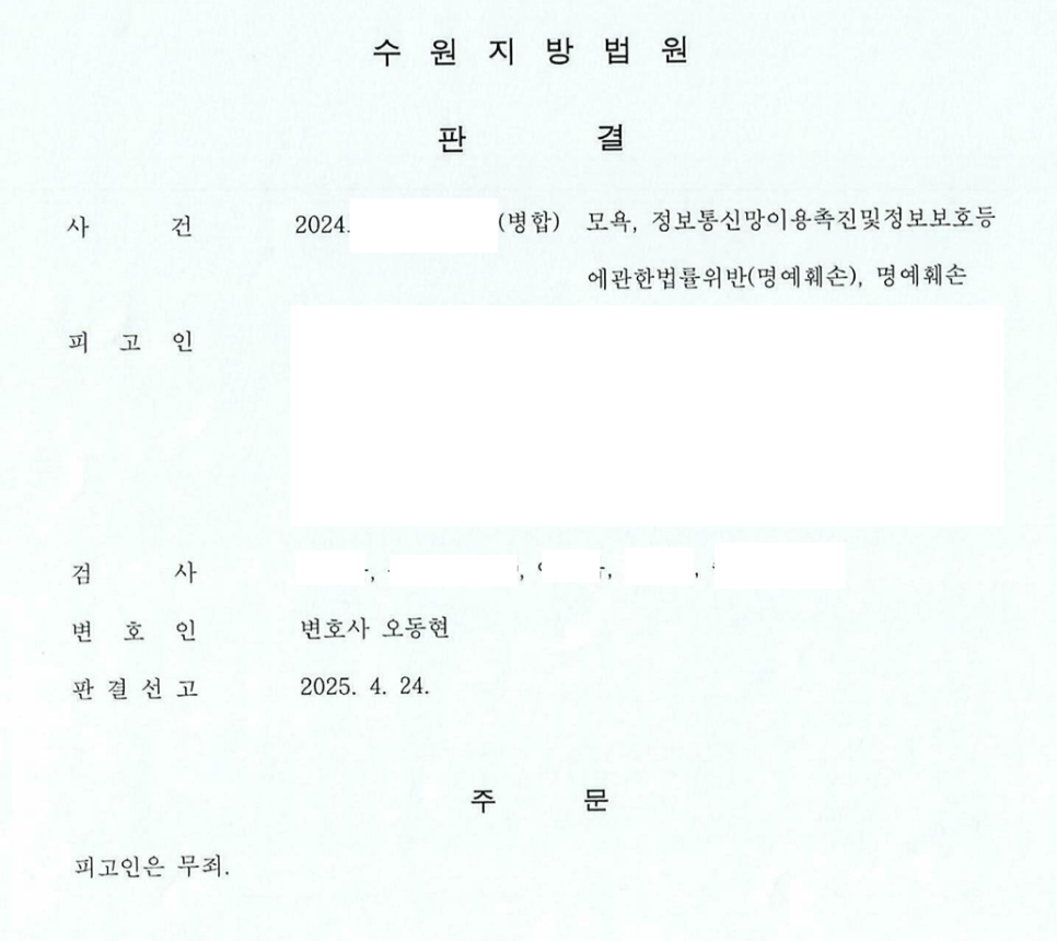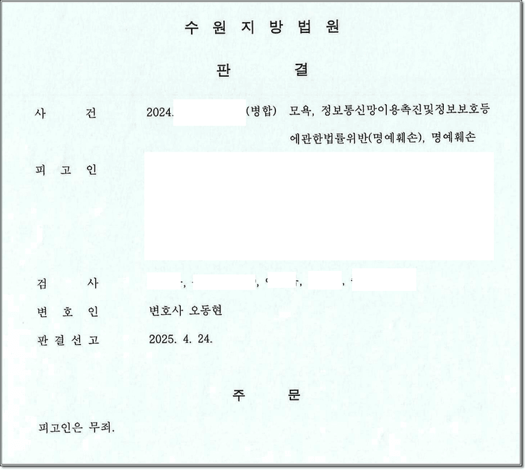3. 최종 결과 - 사이버명예훼손, 모욕 형사재판 전부 무죄