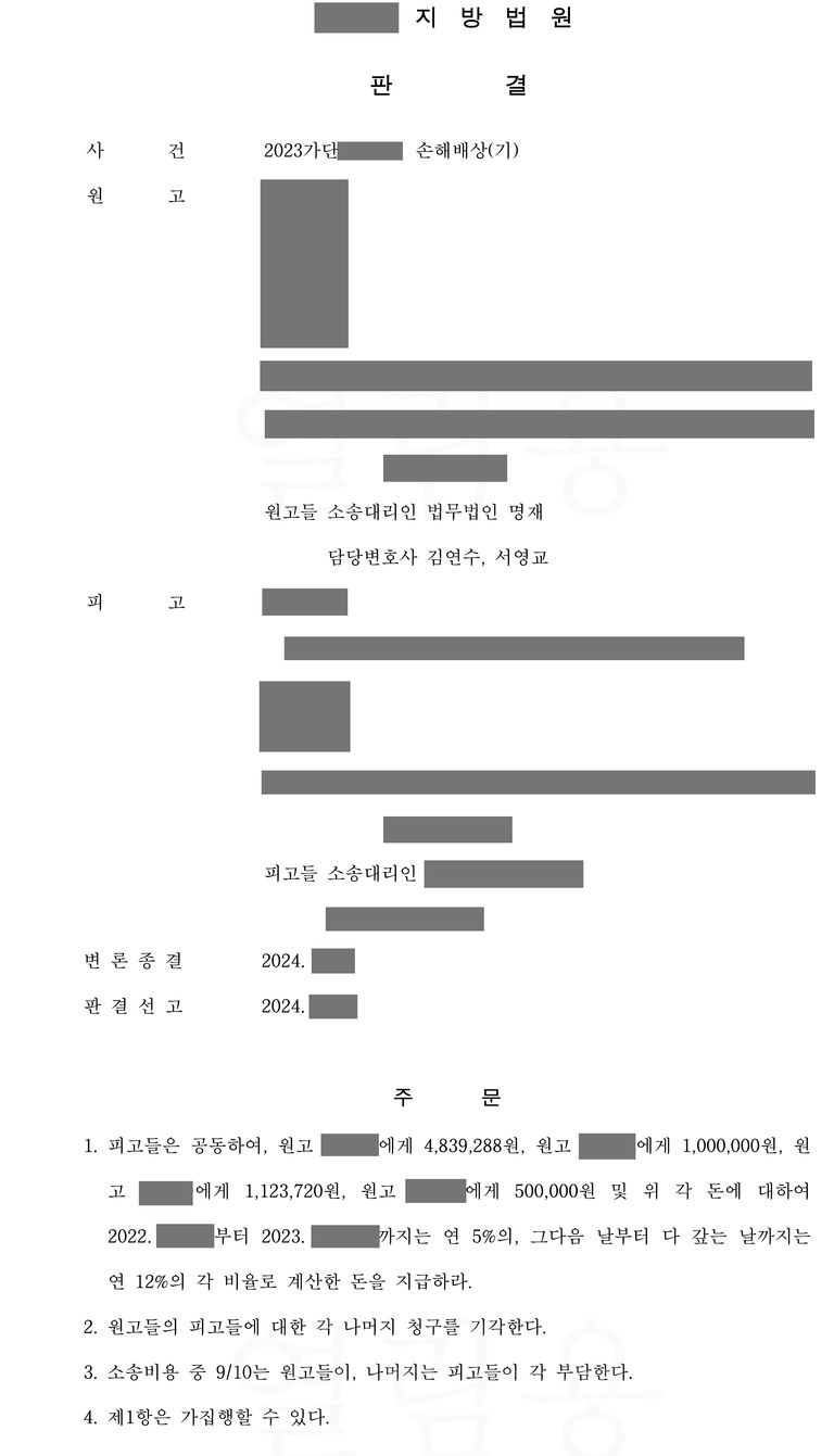 총 약 660만 원의 배상판결을 이끈 김연수 변호사의 성공사례입니다.