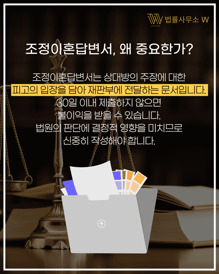 조정이혼답변서는 사건의 승패를 좌우할 수 있는 중요한 문서입니다.