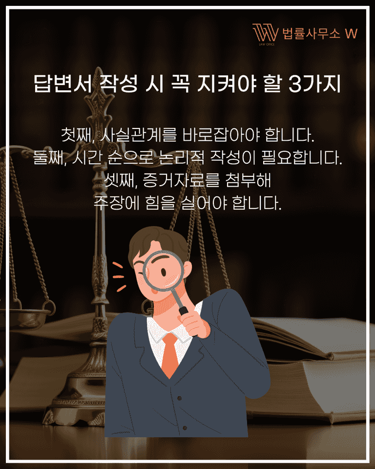 답변서는 단순 반박문이 아닙니다. 육하원칙에 따라 사실관계를 시간순으로 정리하고,