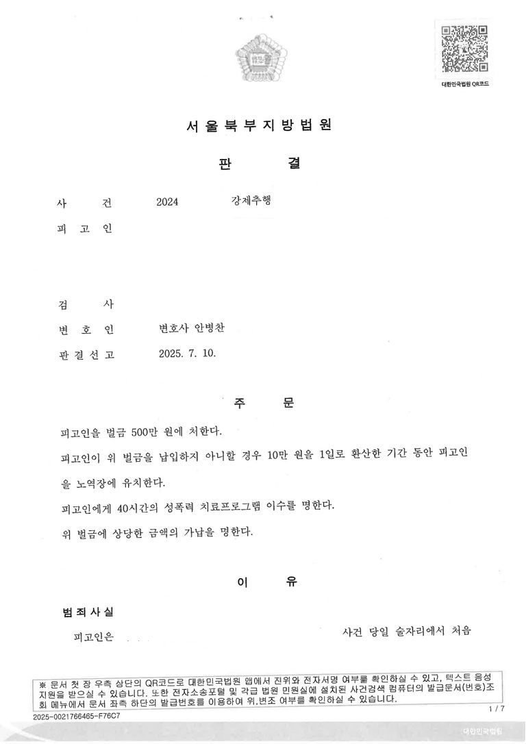 의뢰인은 벌금 500만원을 선고받았습니다.