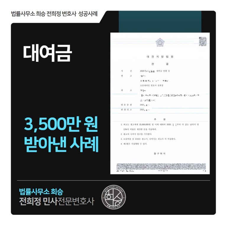 대전민사전문변호사, 대여금 3,500만 원 받아낸 사례
