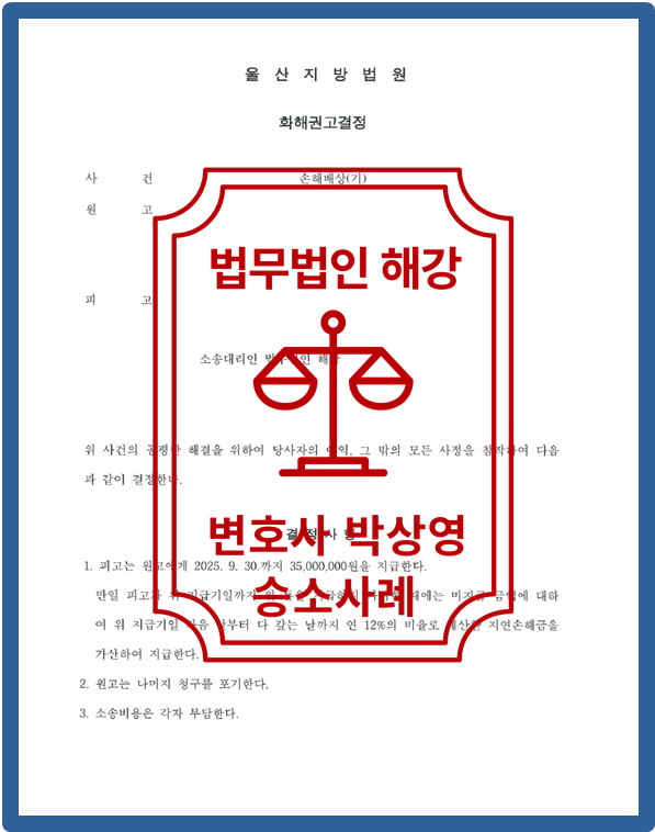 법무법인 해강에서는 법리적 검토와 준비서면 등을 통하여 의뢰인의 맞는 법률 조력을 하고자 노력하였고 [일부방어]에 성공 하였습니다.