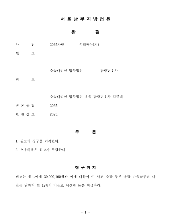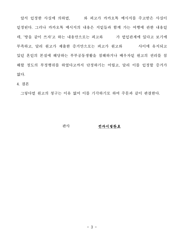 저는 즉각 응소하여 상간 행위가 없었음을 주장 입증하였고 법원은 원고 청구를 기각하였습니다.