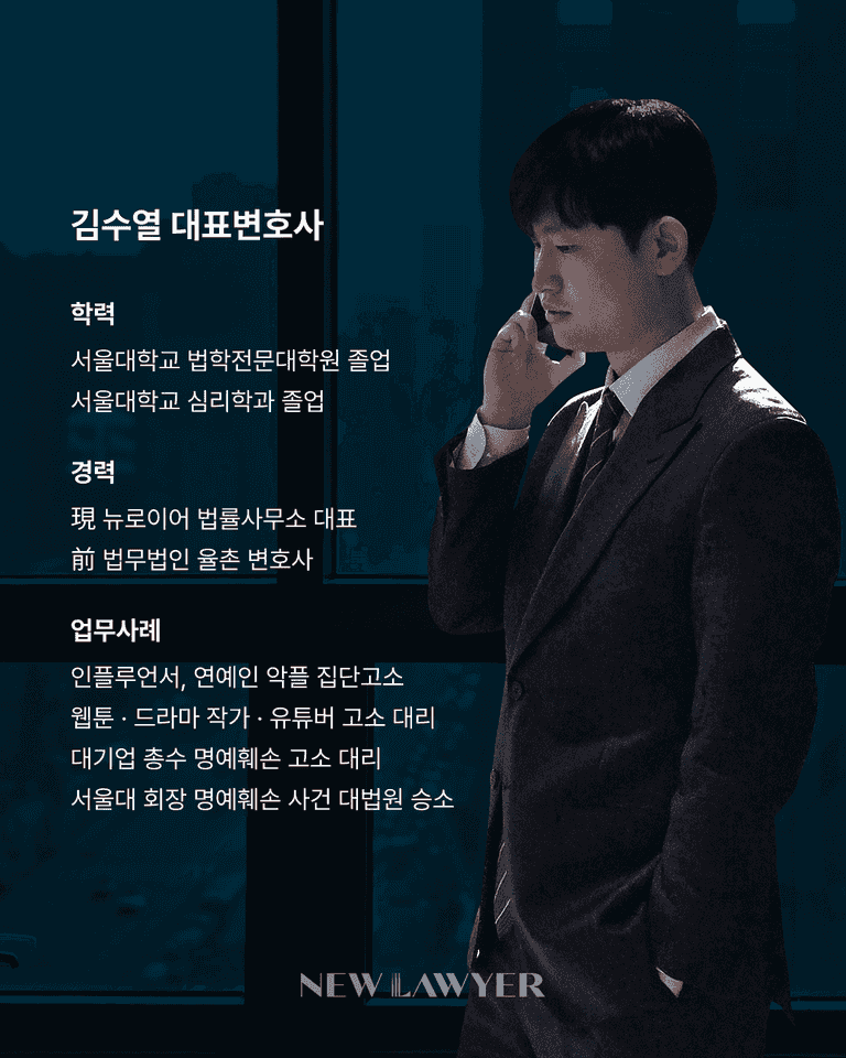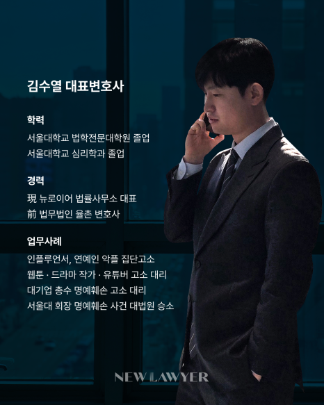 안녕하십니까? 뉴로이어 법률사무소 김수열 대표 변호사입니다.