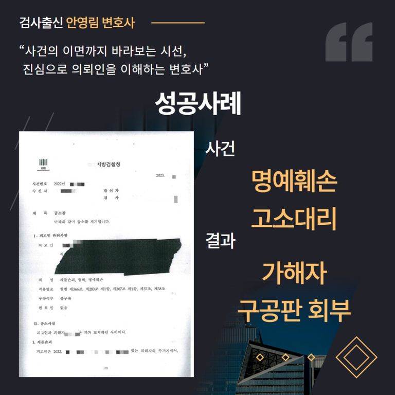 명예훼손 고소 → 결과 : 가해자 ‘구공판’ 회부