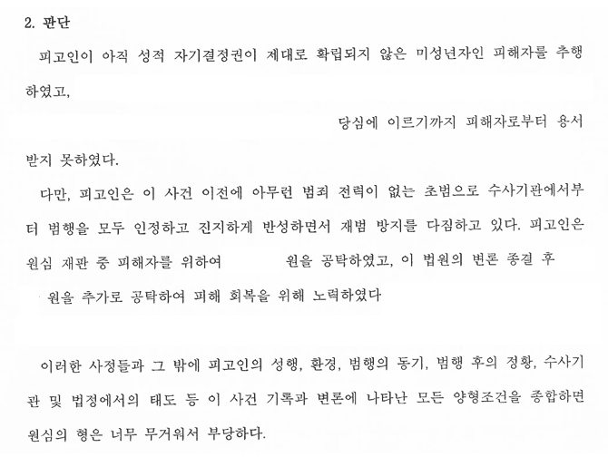 5. A씨는 카메라촬영죄 사건에서 저희의 조력을 받음으로써 항소심단계에서 집행유예 선고를 받으셨습니다.