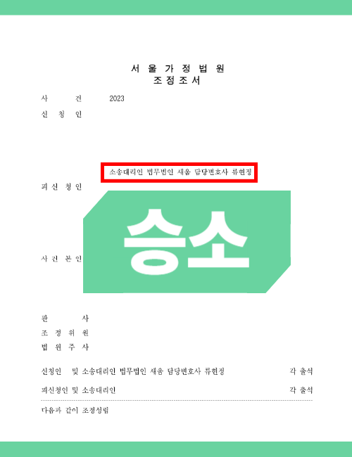 또한 남편이 결혼 전에 취득하였던 아파트를 처분하면서, 3채의 아파트를 추가로 매입한 사실을 토대로, 충분한 기여도를 인정받아 재산분할을 할 수 있도록 하였습니다. 이와 함께 남편의 재정능력을 감안할 때 현실적으로 양육비 기준표보다 더 많은 양육비를 받아야 한다는 사실을 주장하여, 조정에서 분쟁 없이 충분한 양육비까지 받을 수 있도록 하였습니다.