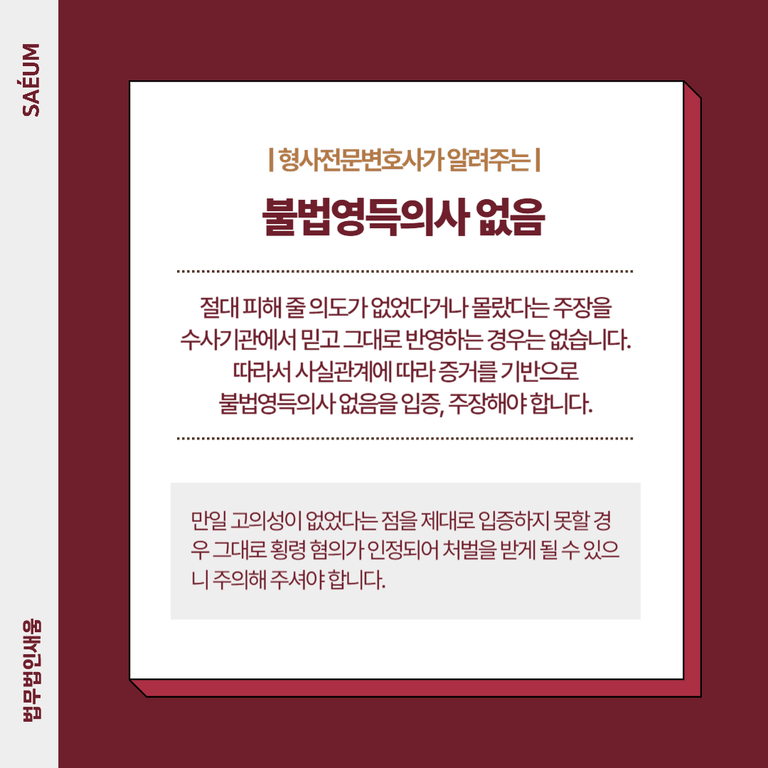이 경우 A씨가 B씨에게 금원을 지급하지 않은 상황에 대해서 정당한 사유가 있었는지가 중요한 관건이었습니다. 이에 법무법인 새움에서는 A씨와 아들, B씨 사이의 채무관계가 확정되지 않았다는 점을 강조할 수 있도록 하여 불법영득의사가 없었음을 입증하였습니다. 이와 같이 적극적으로 대응한 결과 무사히 고의성이 없다는 점이 인정 받아 불송치 결정을 받게 되었고, 해당 사건은 검찰 조사나 재판으로 넘어가기 전 빠르게 마무리될 수 있었습니다.