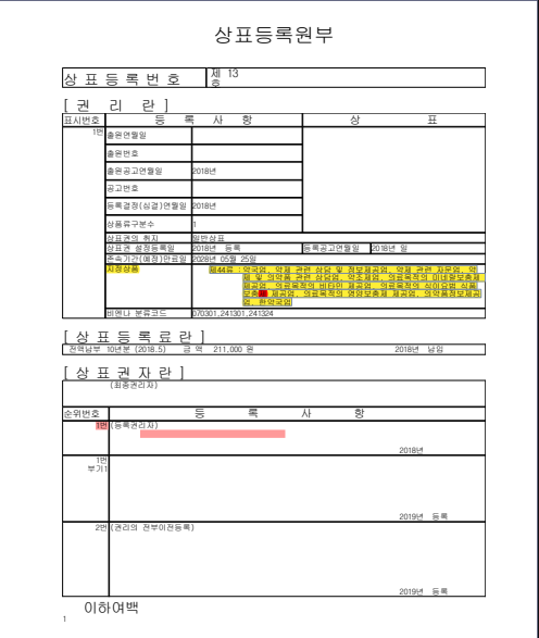 상표등록원부에는 아래와 같이 지정상품이 나와 있습니다.