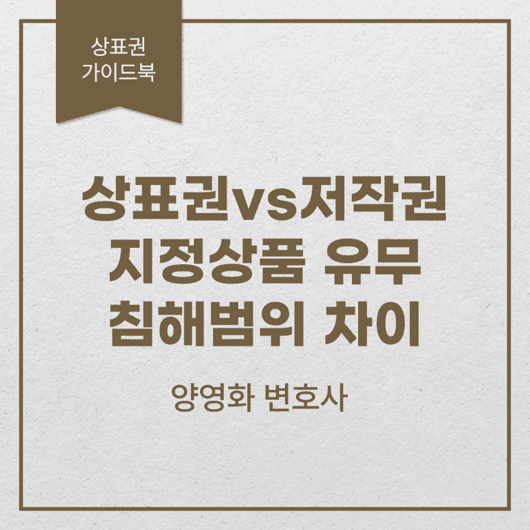 이처럼 상표권과 저작권은 지정상품 유무에서 차이가 있습니다.