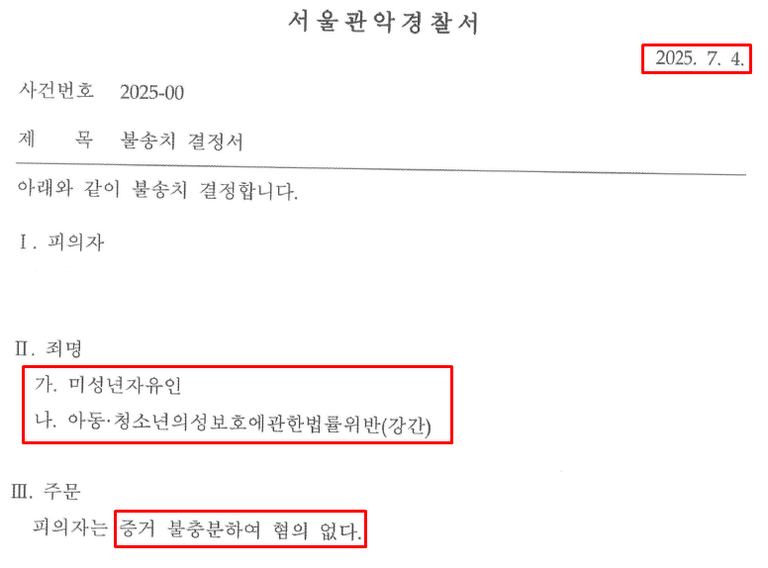 불송치 결정(혐의없음) 내려주셨습니다✨