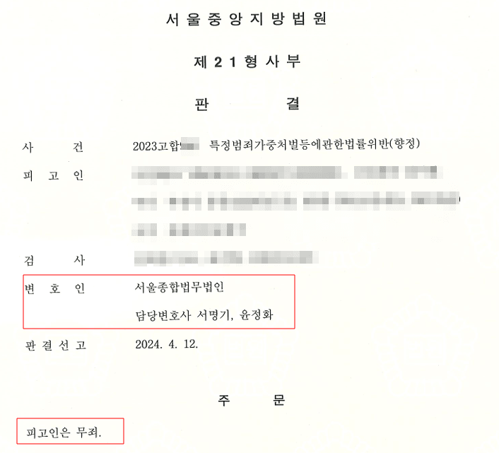 판결문 내용과 같이 "피고인은 무죄" 판결을 받게되었습니다.