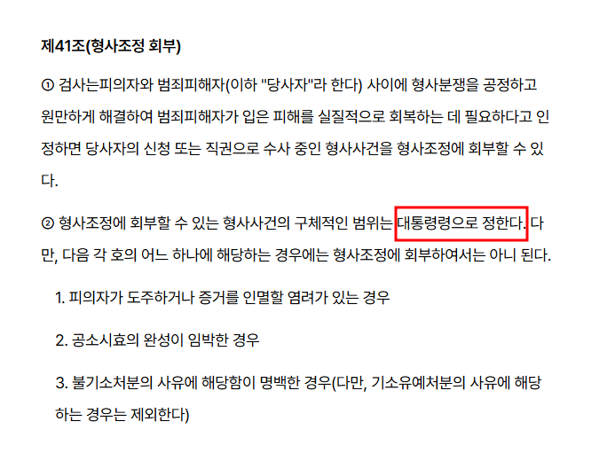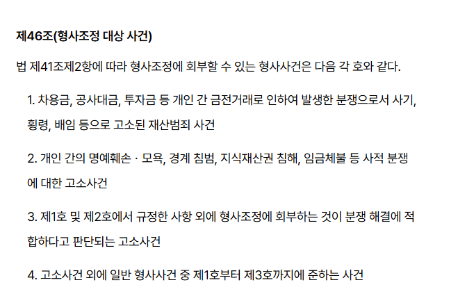 또한 범죄피해자보호법 제41조 제2항은 형사조정에 회부하여서는 안되는 경우도 규정하고 있습니다.