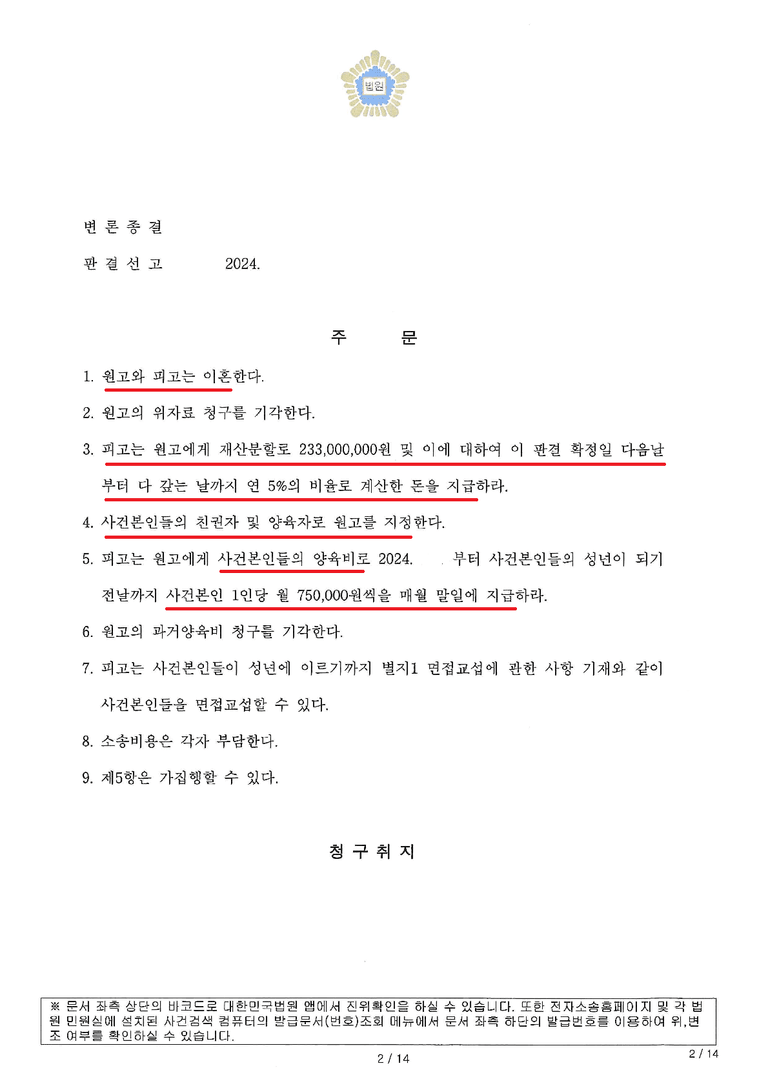 재산분할 2억 3천만 원 판결을 받은 사례입니다.