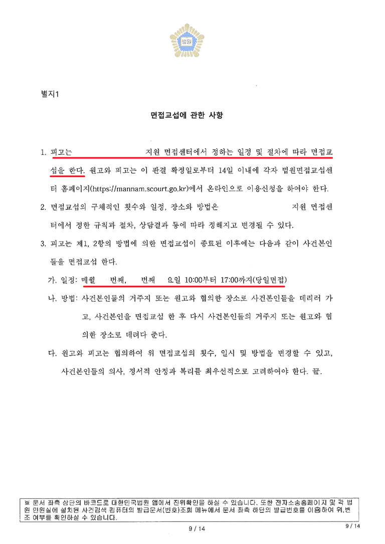면접교섭 또한 통상적으로 이루어져야 한다는 내용의 입장을 유지해왔습니다.