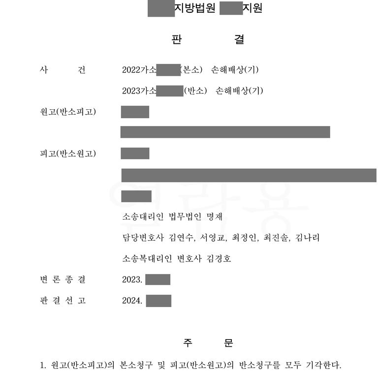 상대방의 민사 청구를 전부 기각시킨 성과를 이끌어냈습니다.
