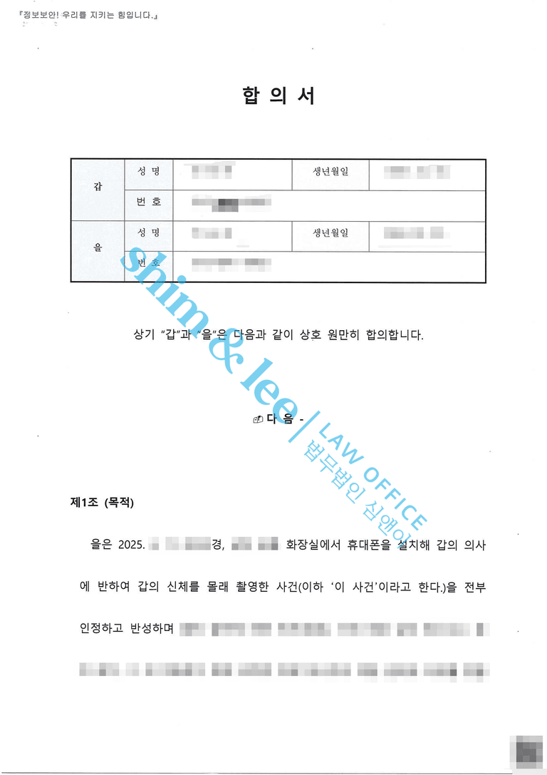 의뢰인으로부터 가해자의 불법 촬영 영상, 사건 직후의 대화 내역, 그리고 당시 상황을 정리한 진술정리본을 신속히 전달받았습니다.