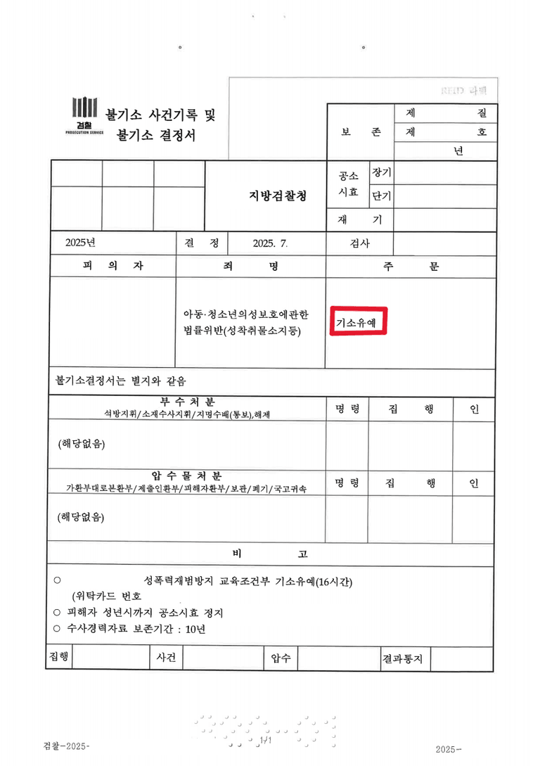 ✅ 결과: 교육조건부 불기소처분