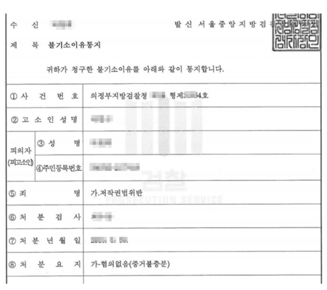 검찰은 피고소인에 대하여 불기소처분을 하였습니다.