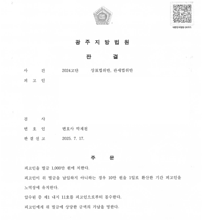 의뢰인은 1,400만 원 정도 추징될 것이 걱정되어서 이에 대해 추징액의 감액을 위해 수임을 원했고, 재판을 진행하게 되었습니다. 재판부에 피고인이 관세법 및 상표법 위반 사실은 인정되지만 적발 이후 피고인이 모든 과징금을 납부했다는 점을 주장하고, 피고인이 실제 판매하여 얻은 이익이 거의 없다는 점을 드러냈습니다.