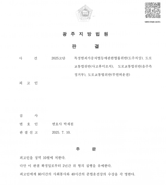 검사의 구형이 징역 2년이었음에도 불구하고 구형의 2분의 1보다 낮은 형이 선고되었는데, 검사가 다행히 항소하지 않아 확정되어 종결될 수 있었습니다. 의뢰인이 다시는 음주운전하지 않길 바랍니다.