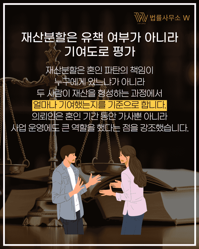 이 사건은 유책 배우자라고 해서 반드시 재산분할을 포기해야 하는 것은 아니라는 점을 잘 보여줍니다.