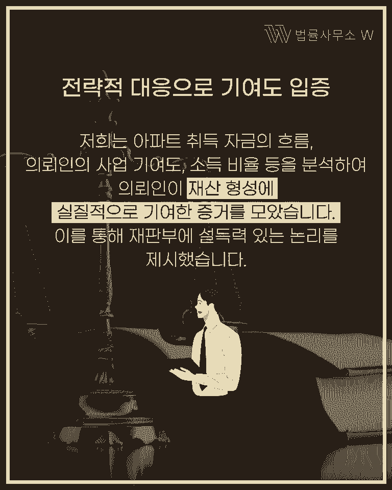 그 형성 과정에서 의뢰인의 경제적·비경제적 기여가 상당했다는 점을 집중적으로 증명했습니다.