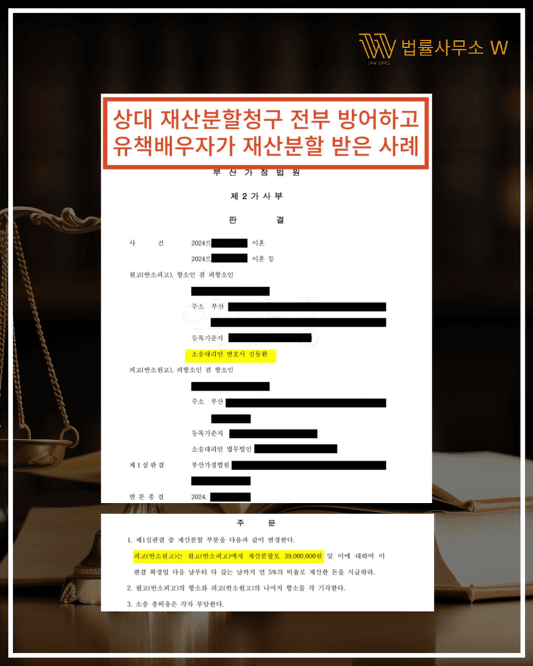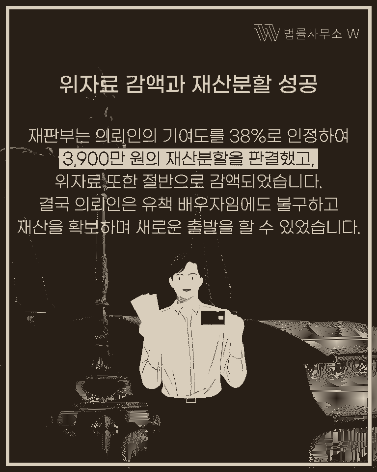 위자료 50% 감액 + 재산분할 3,900만 원 확보