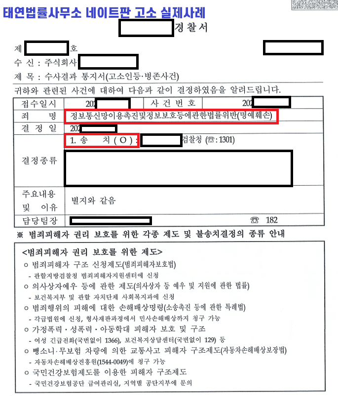 정보통신망법위반(명예훼손) 기소의견 송치되다!