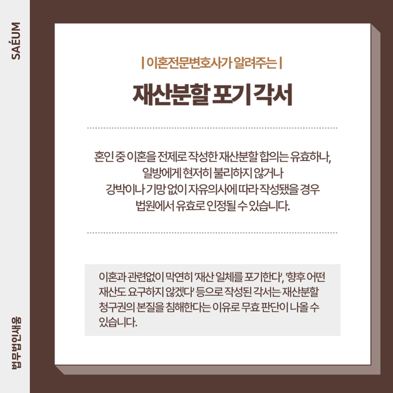 혼인 중 작성한 재산분할 포기 각서 유효할까?