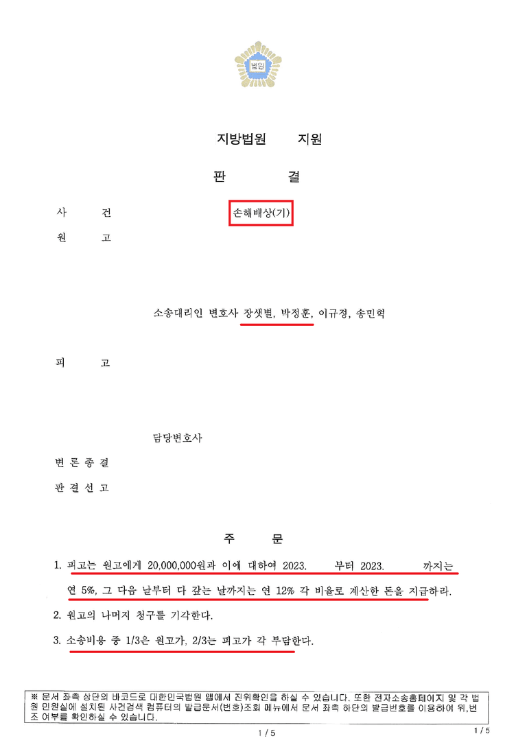 판결문 공유드립니다.