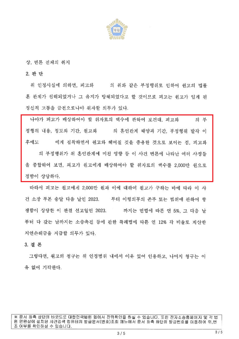 이에 판사님께서 상간자의 태도를 판결문에 기재해 주셨고,