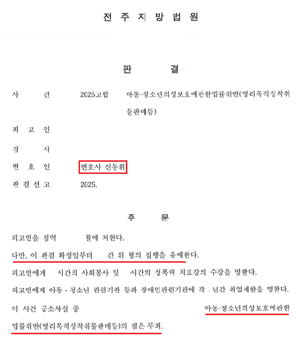 #전주변호사 #전주형사변호사 #전주성범죄변호사 #아동청소년의성보호에관한법률 #영리목적성착취물판매 #집행유예 #성범죄변호사 #일부무죄