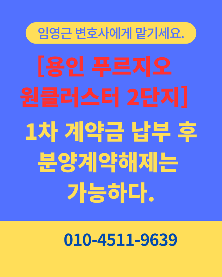 오늘은 제가 현재 진행 중인 용인 푸르지오 원클러스터 2단지 공급계약 해지(해제)가 가능한지에 관한 부분입니다.