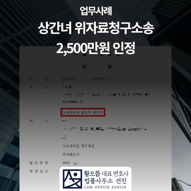 상간녀에게 위자료 2,500만원 지급 판결을 선고하며, 피해를 회복할 수 있게 되었습니다.