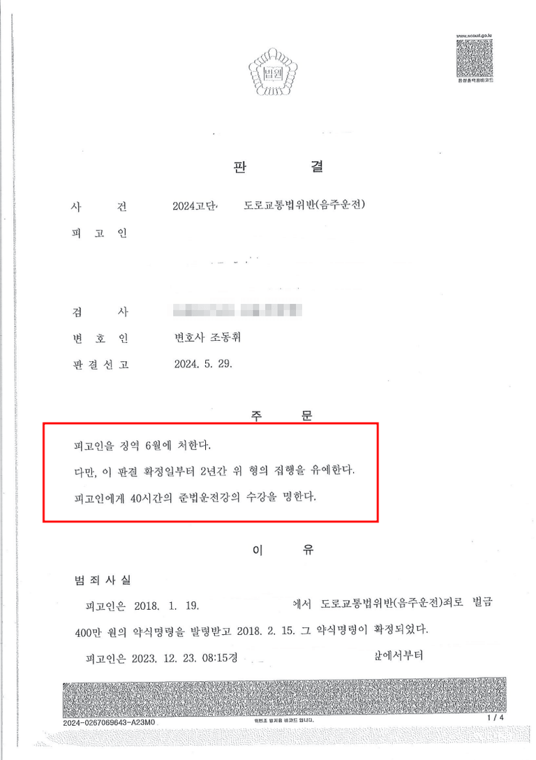 음주운전 사건에서 감옥에 가느냐 집행유예를 받느냐의 차이는 작아 보일 수 있지만, 그 결과는 인생 전체를 바꿔놓을 만큼 크다는 것을 다시 한번 확인한 사례입니다. 특히 같은 잘못을 반복한 경우 판사들이 엄하게 보기 때문에 전문적인 변호 전략이 더욱 중요함을 보여줍니다. 그냥 반성문을 쓰거나 탄원서를 받는 것보다는 판사가 중요하게 보는 '실제 행동'을 통해 다시는 하지 않겠다는 마음을 보여주는 것이 핵심이라는 점을 확인했습니다. 또한 아무리 불리한 상황이라도 그냥 운에 맡기지 말고 경험 많은 전문가의 도움을 받아서 준비를 철저히 한다면 선처받을 가능성이 있다는 것을 보여주는 사례라고 생각합니다. 수백 건의 음주운전 사건을 해결한 경험이 이러한 결과를 만들어낼 수 있었던 핵심 요인이었습니다.