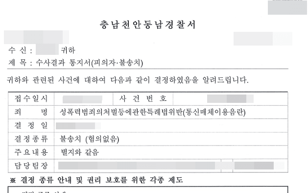 경찰쪽에서는 본 변호인의 주장을 받아들여 ‘불송치(혐의없음)’ 결정을 내렸습니다. ‘범죄 혐의가 인정되지 않는다’는 공식적인 확인이었습니다.