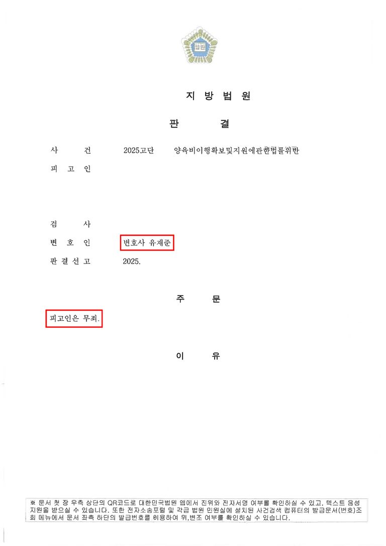 ![[형사] 양육비이행확보및지원에관한법률 위반 무죄 사례](/_next/image?url=https%3A%2F%2Fd2ai3ajp99ywjy.cloudfront.net%2Fuploads%2Ftitleimage%2Foriginal%2F5bf9686d119952ec1e067294-original.jpg&w=3840&q=75)