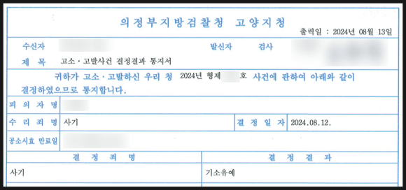 이러한 이의신청이 받아들여져 검찰에서 이 사건에 대한 수사가 본격 다시 개진되었고, 여기에 위협을 느낀 상대방은 결국 빌린 돈과 이자를 포함한 1억 3,000만 원을 변제하였습니다. 의뢰인께서는 위와 같은 돈을 수령하신 뒤 처벌불원서를 작성하여 주셨고, 상대방은 기소유예 처분을 받았습니다.
